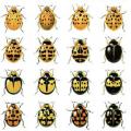 | Harlequin ladybird (H. axyridis) - some of the colour variants | ||